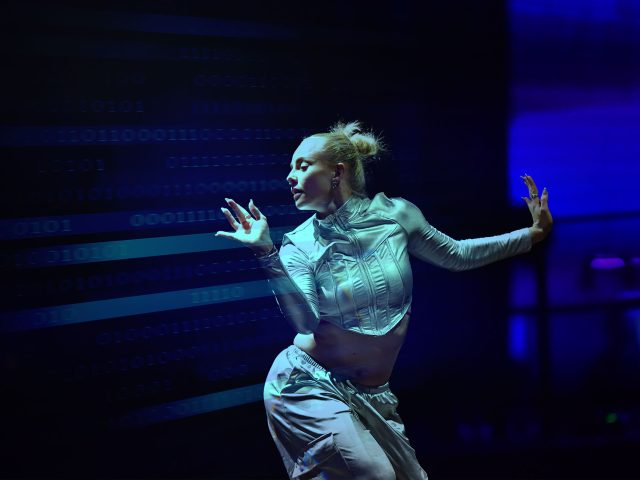 Auf der Tech Summit in Amsterdam ist darüber hinaus auch die Bühnenkulisse mit schwebenden plastischen LED-Elementen ausgestattet und die Show mit einem Intermezzo aus Luftakrobatik am Trapez bereichert. Zusammen mit dem Effektlicht, entsteht so ein sehr stimmiges Gesamtbild und eine abwechslungsreiche Performance:
