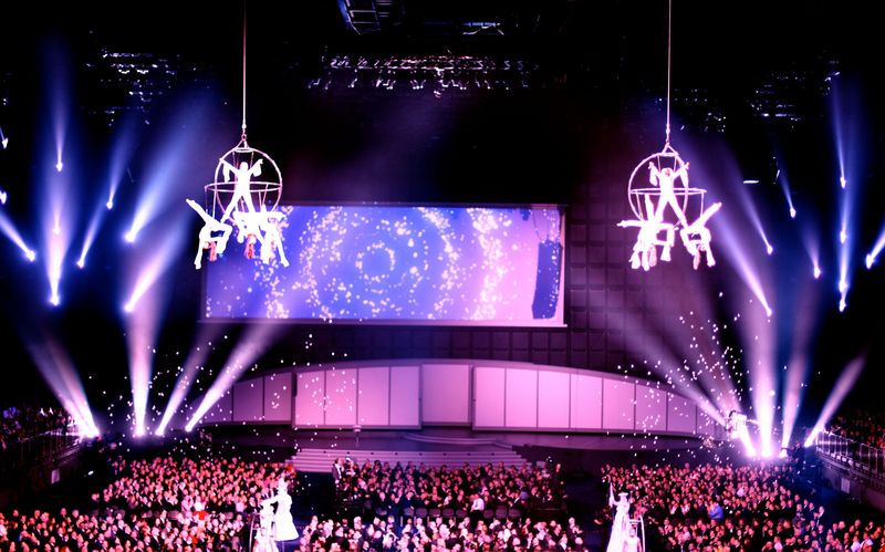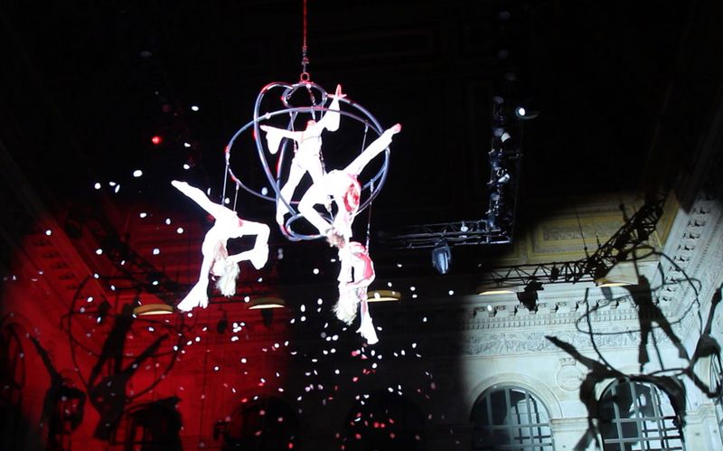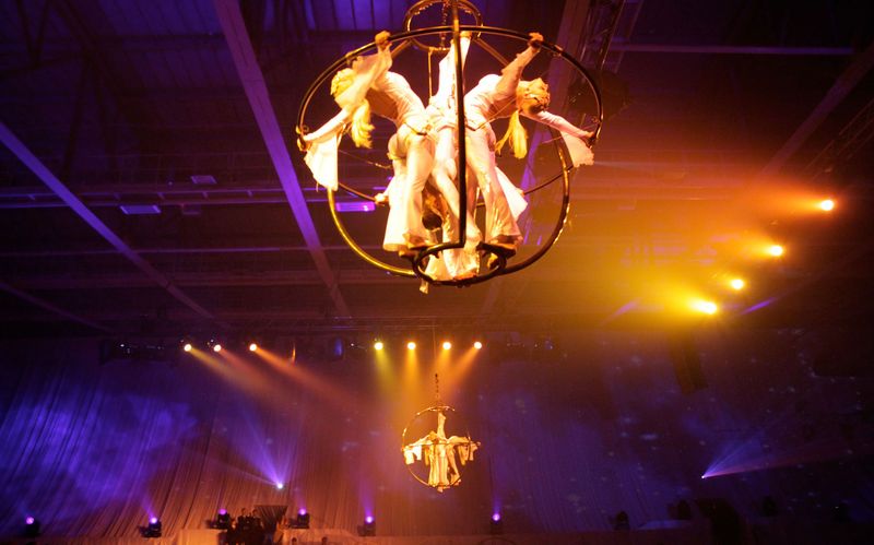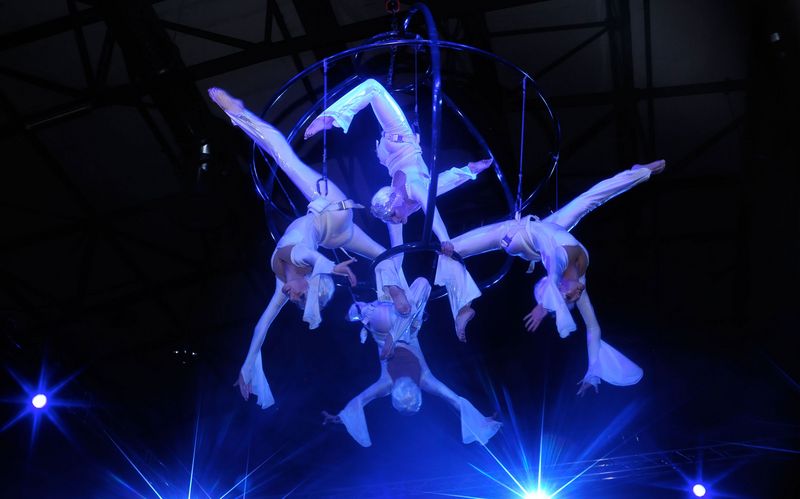 Engelsgleich schweben Artistinnen in luftiger Höhe.