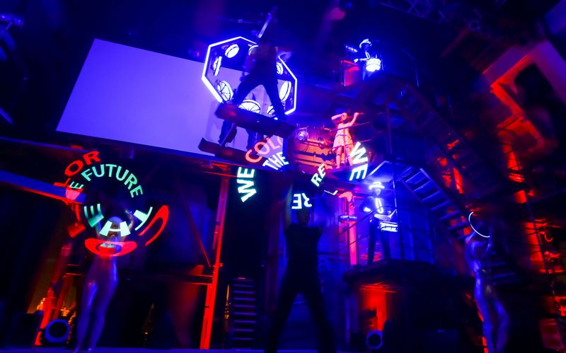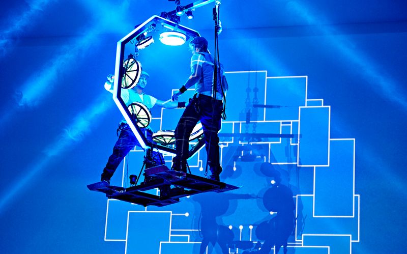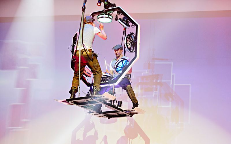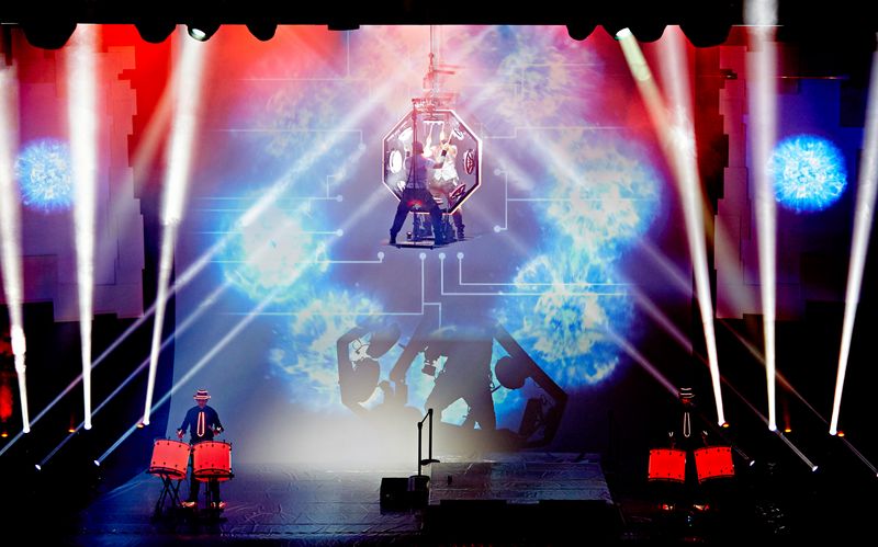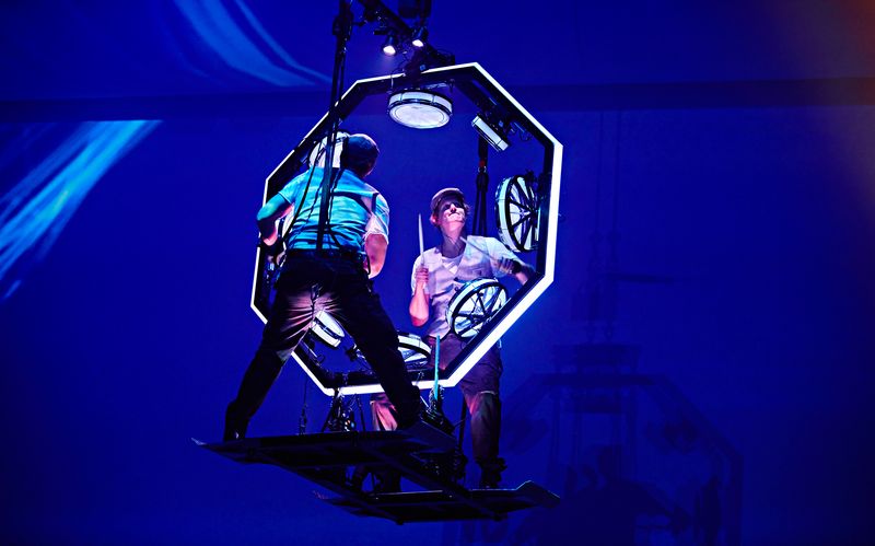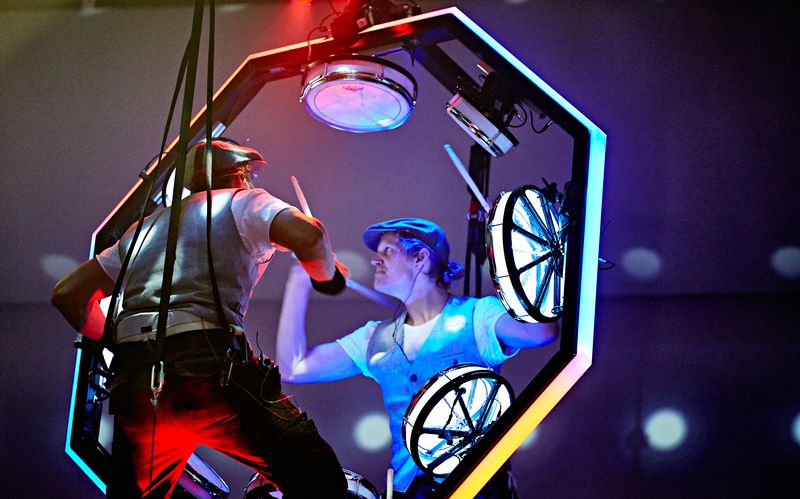 Bass-Drummer unterstützen die innovative Darbietung mit mächtigen Beats.