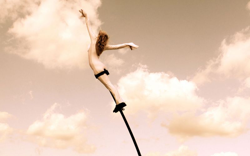 Künstler agieren mit Leichtigkeit auf spektakulär biegsamen Schwungstangen.