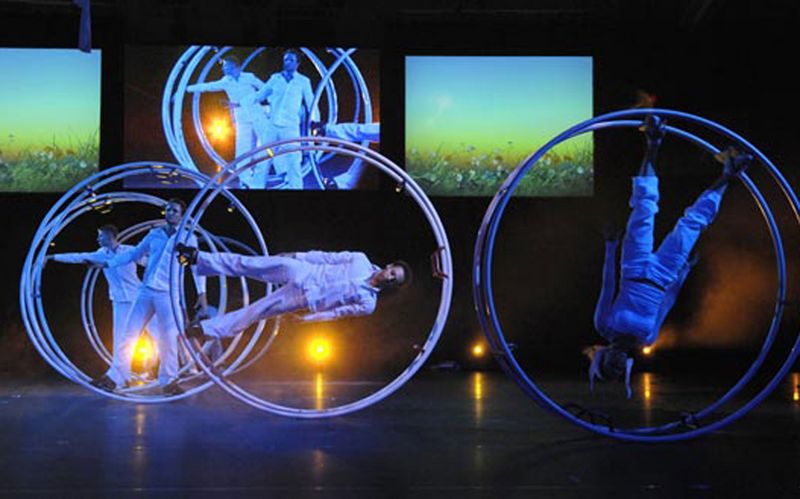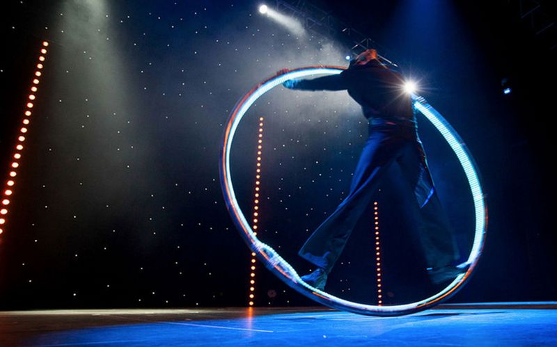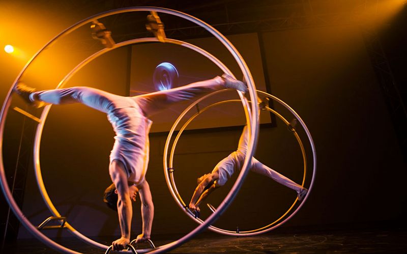 Cyr Wheel und Rhönrad werden auf moderne Weise inszeniert.