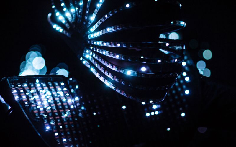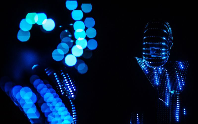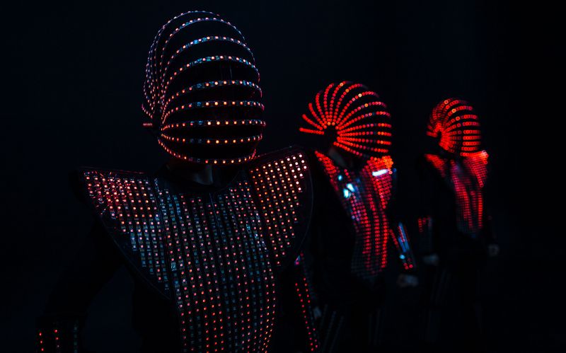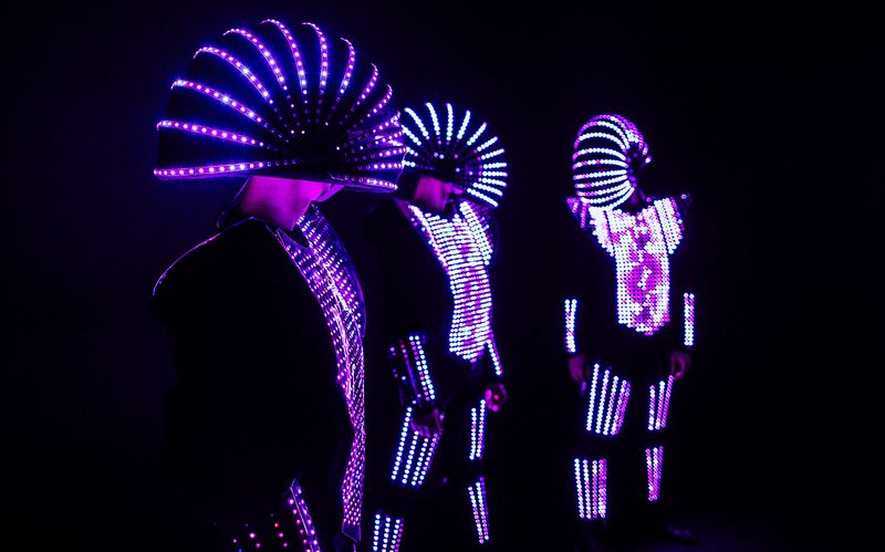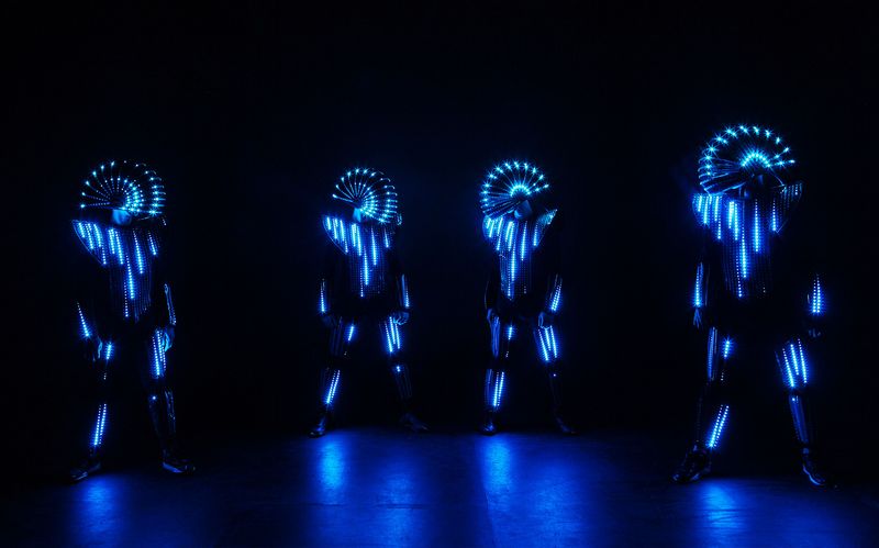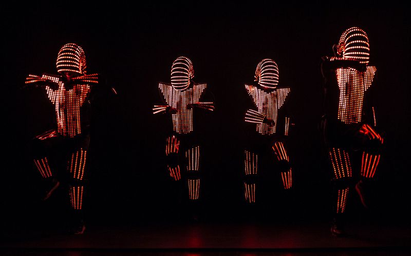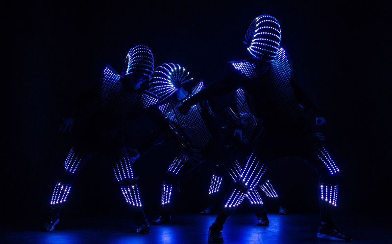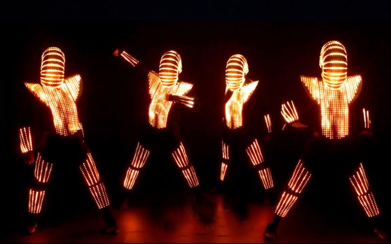 Spacige Tanzperformance mit innovativen Leuchtkostümen.