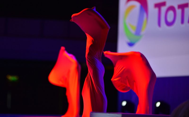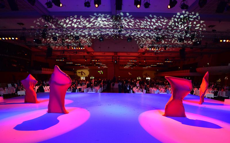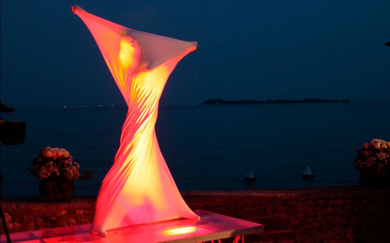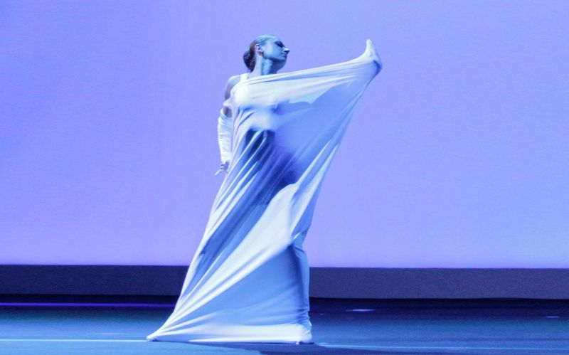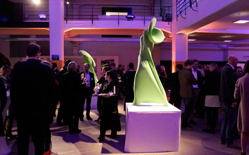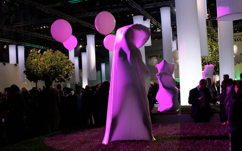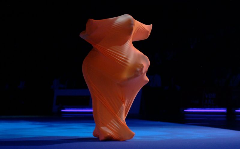 In Stoff gehüllt agieren Performer als lebende Skulpturen.