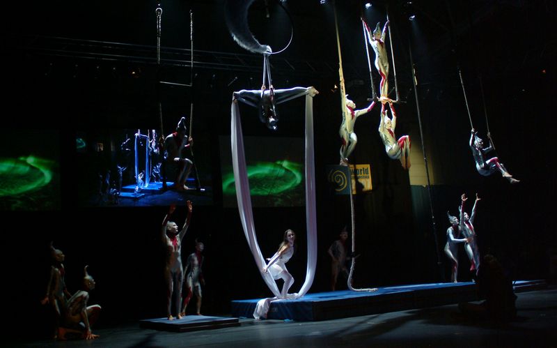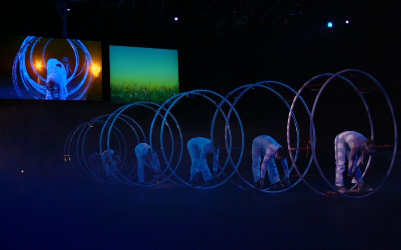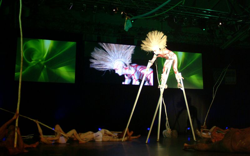 Es gab die unterschiedlichsten Darbietungen zu Nachtphänomenen, die akrobatisch und tänzerisch in Szene gesetzt werden. Von Vampiren über Teufel bis hin zu Glühwürmchen und Kobolden. Am Ende der bewegten und erlebnisreichen Inszenierung finden die traumwandelnden Protagonisten durch die Begegnung mit den Traumgestalten zueinander. Bewegung wird zum verbindenden Element – aus Turnen wird Gestaltung.