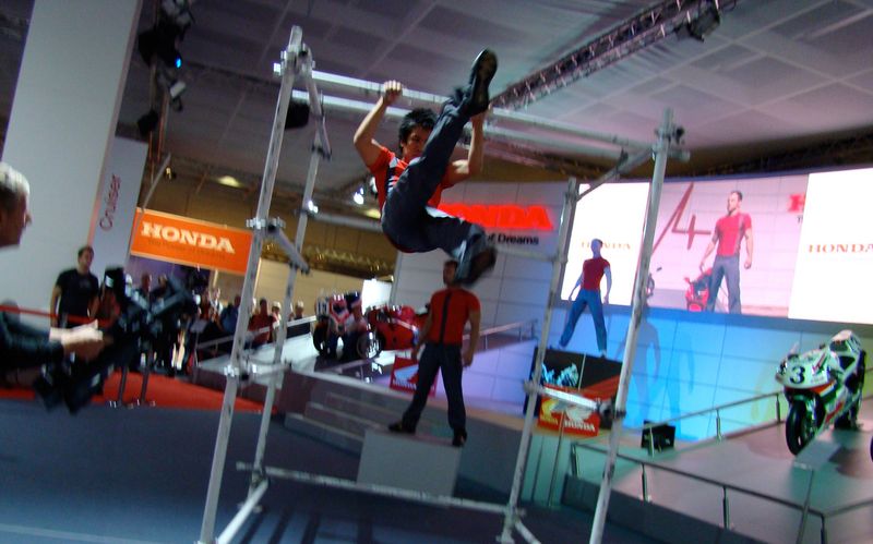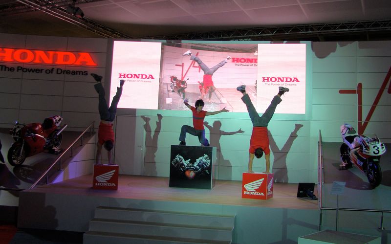 Zur Auftaktveranstaltung der seit 1998 zweijährlich stattfindenden größten internationalen Motorradmesse wurde für die Händler der Firma Honda ein außergewöhnliches Konzept ausgearbeitet. Das oberste Parkdeck der Messe wurde zur Eventlocation und Schaubühne.