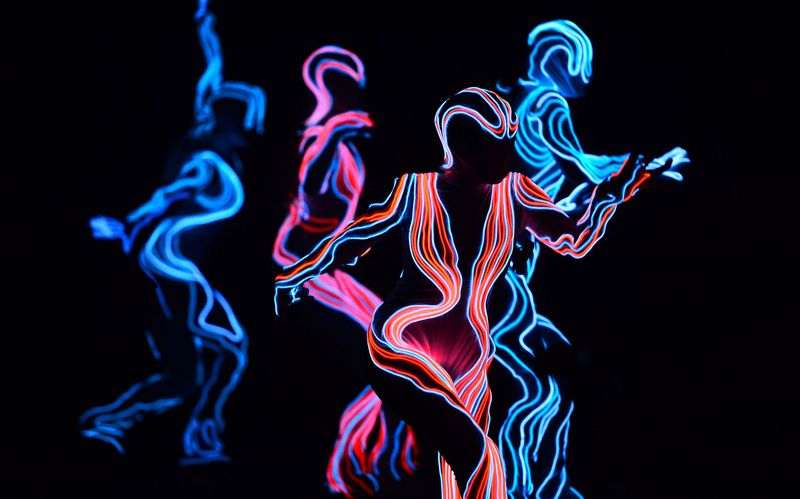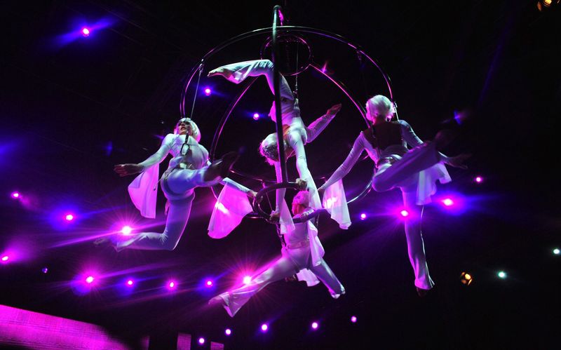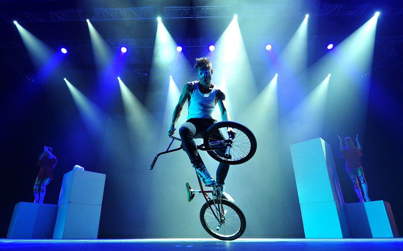 Eine Inszenierung aus Artistik, Tanz, Musik und visuellen Effekten, die über Bewegungsästhetik, Farben und Formwelten kommuniziert.